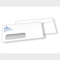 Envelopes that carry official business documents can be branded with a logo and other details. The security tint inside these envelopes ensures that the contents are not seen through the envelope. These are made of 60lb offset paper, which are sometimes called 24lb bond paper, as they have the same thickness, texture and weight (just manufactured slightly differently). We can only print 4/0 on envelopes (on the NON-flap side only).